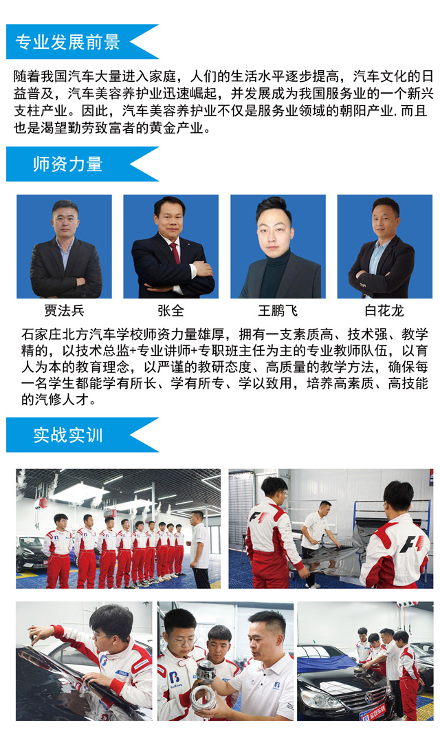 石家庄北方科技中等专业学校 想短时间掌握技能拿高薪 来北方学习汽车美容技术 行业标准化汽车美容车间专业打造 手把手教你开店创业,助你实现老板梦
